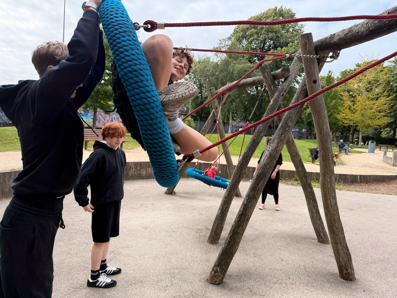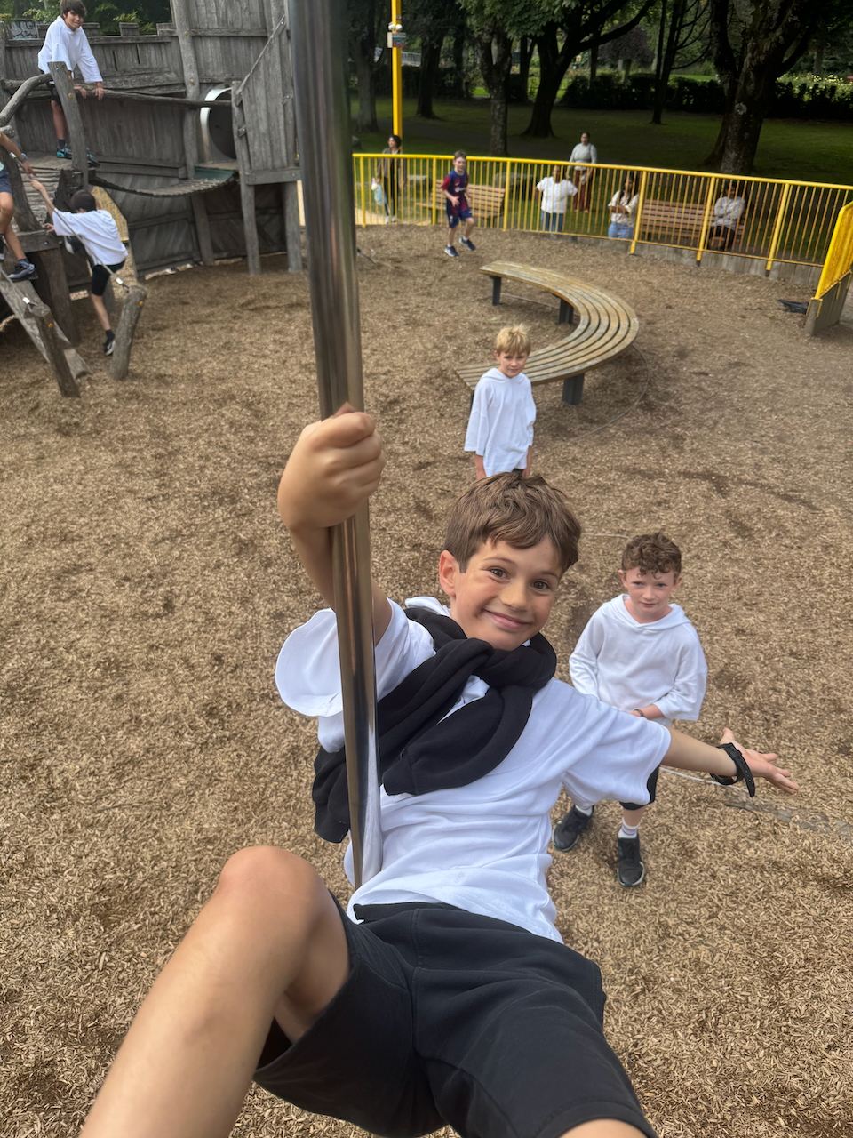 We went to a playground. There were only three kids there. Then BOOM — thirty Libera boys showed up and took over! Some boys were playing football, so we challenged them. Choir vs. Ireland. Naturally we won! There were a lot of us after all so we had to do substitutions.